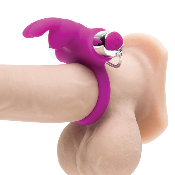 Кольцо надевается на основание эрегированного полового члена. Клиторальный стимулятор в виде милейшего зайки при каждой фрикции чувственно ласкает клитор. А, супер мощная вибрация приближает фантастические кульминации!